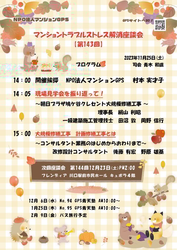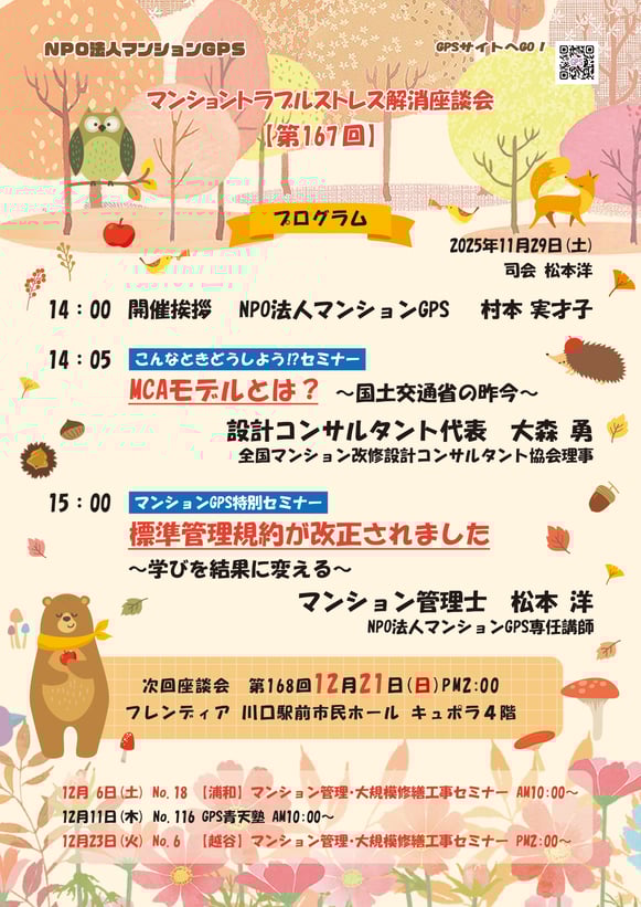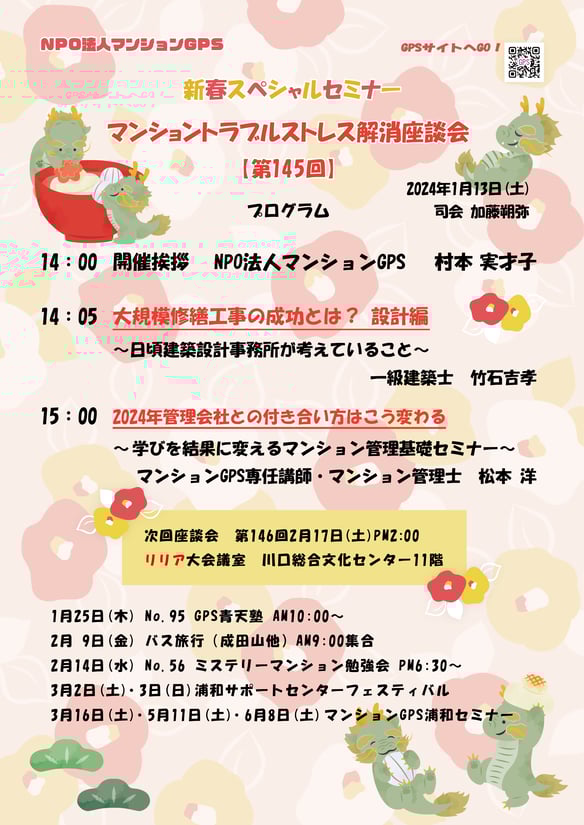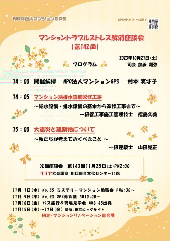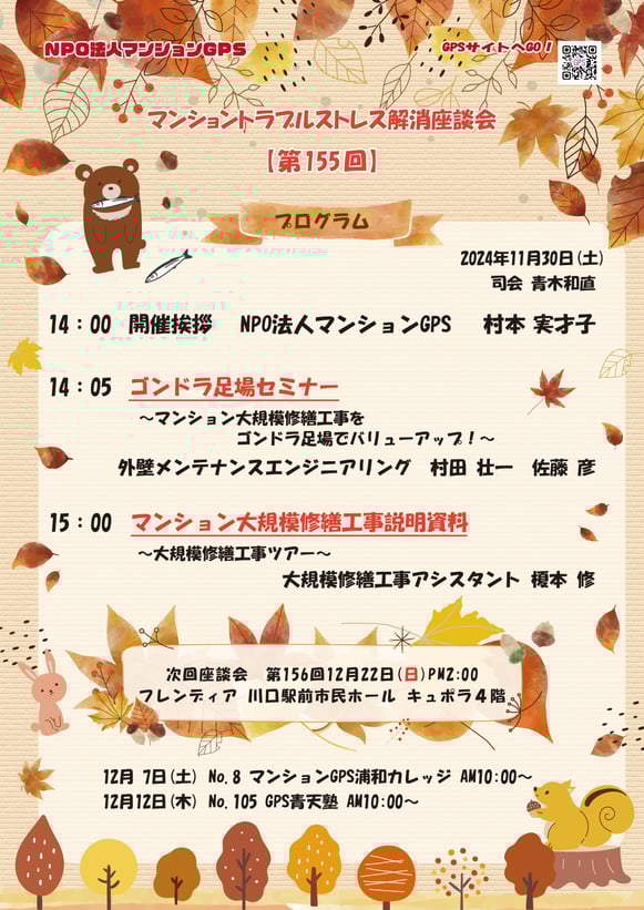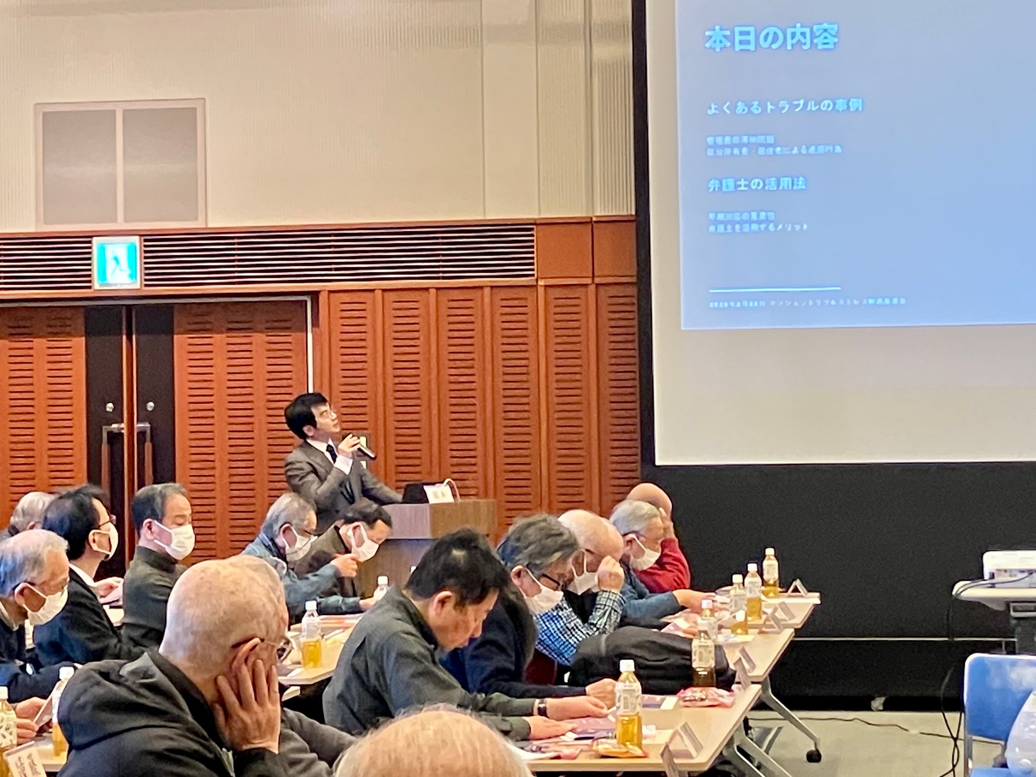 ★毎月1回行われるマンショントラブルストレス解消座談会(セミナー)のプログラム内容や座談会の様子を