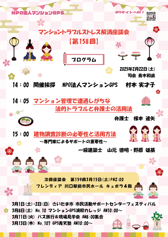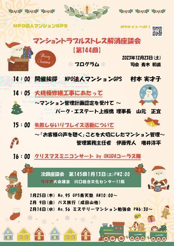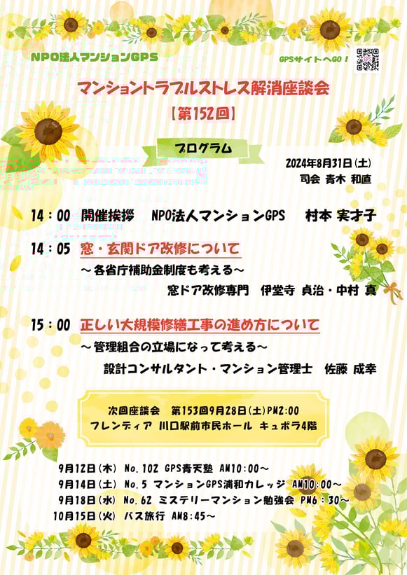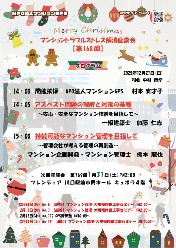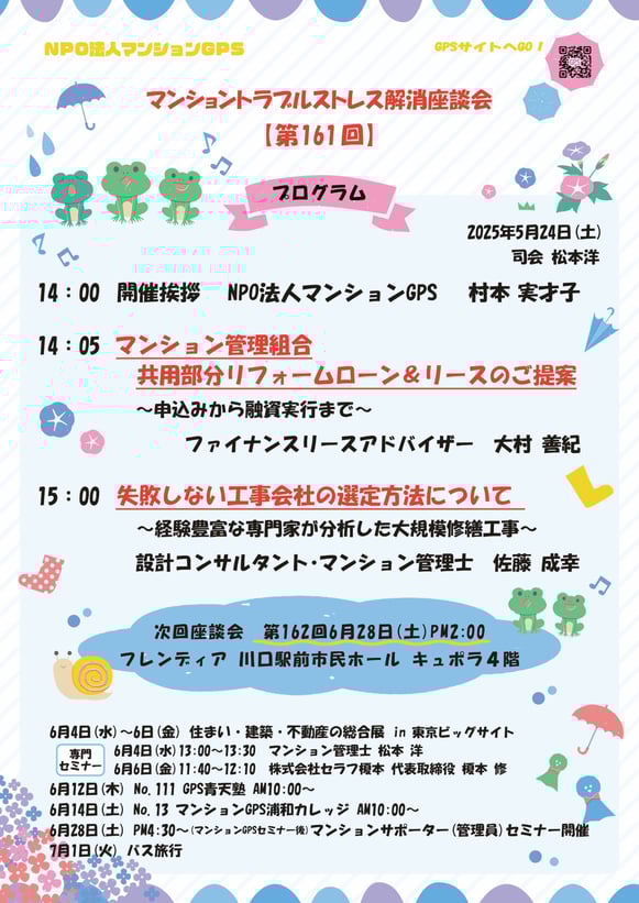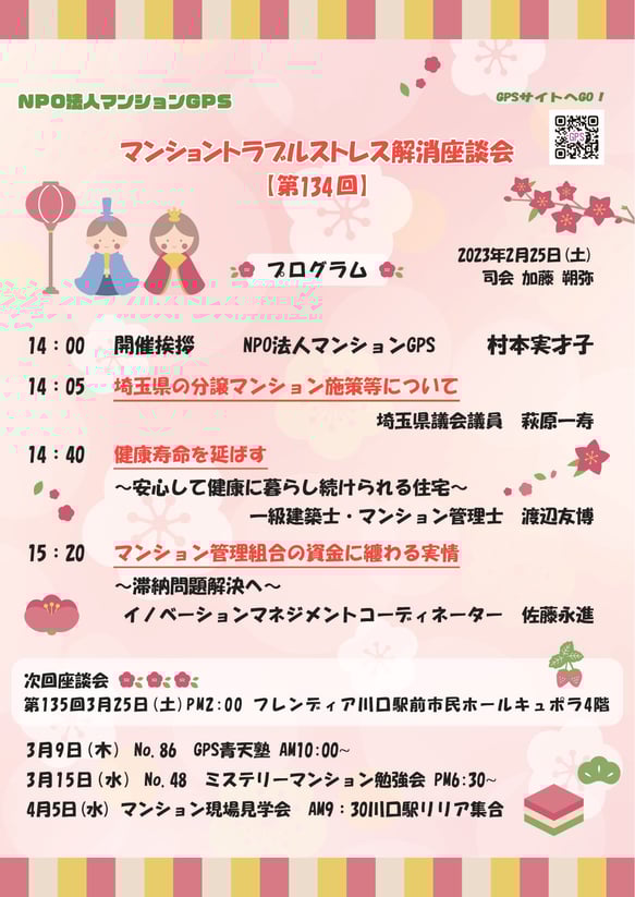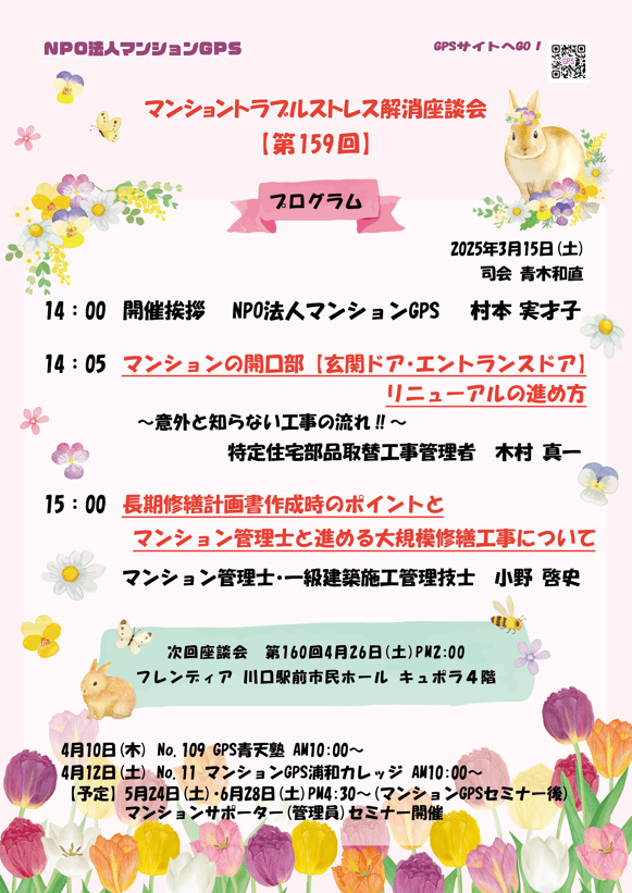 ★毎月1回行われるマンショントラブルストレス解消座談会(セミナー)のプログラム内容や座談会の様子を