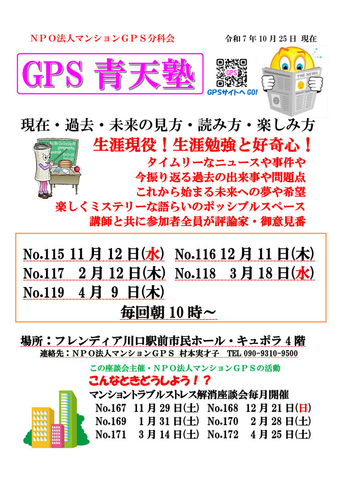 NPO法人マンションGPS分科会 GPS 青天塾 座談会日程